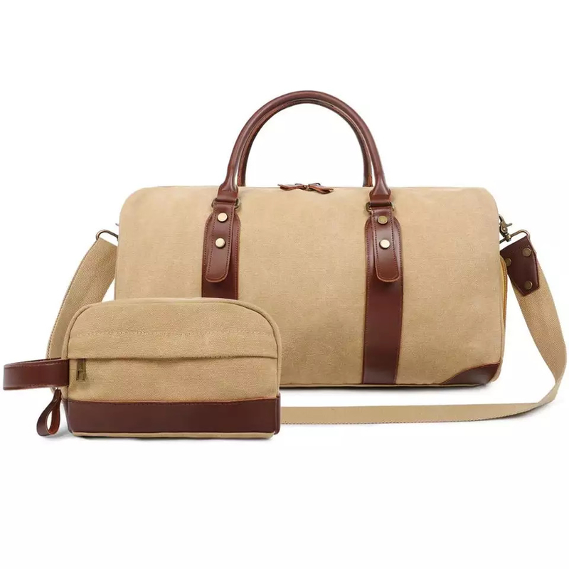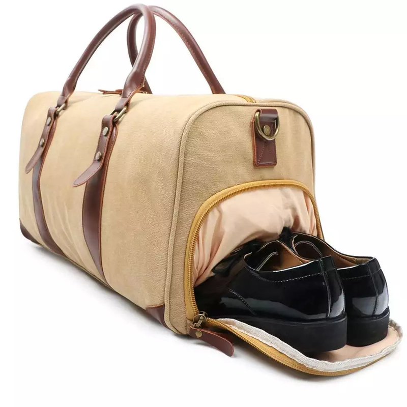 キャンバス レザー デュッフル 旅行 バッグ オーバーナイト 週末 バッグ