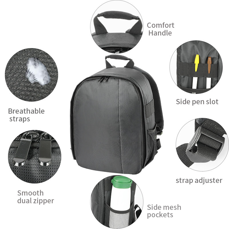 3ボトル/傘の保管用の一方にある高弾性網状袋,カメラバッグの反対側には三脚またはトレッキングポールがあります. 4便利なハンドル