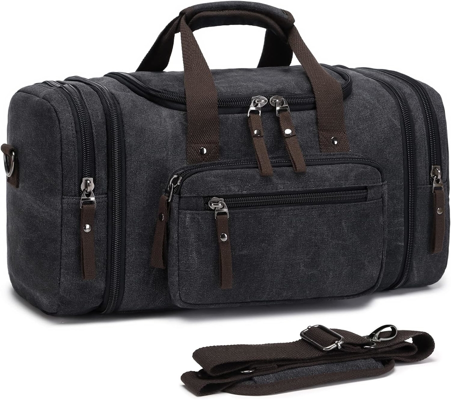 スタイリッシュなキャンバスダッフルバッグには 丸い縫い手柄と 快適にパッドされた 調整可能な脱ぎ取れる肩帯があります肩持ち 横持ち 旅行のどこへ行っても.