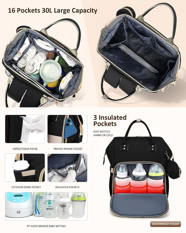 30L 容量と 16 ポケット の この ベビー バッグ の バックパック は,親 が 簡単に 牛乳 の 瓶,余分 な 服,おむつ,拭き皿,おもちゃ,その他 必須 な もの を 持ち込む こと を 便利 に し て い ます!